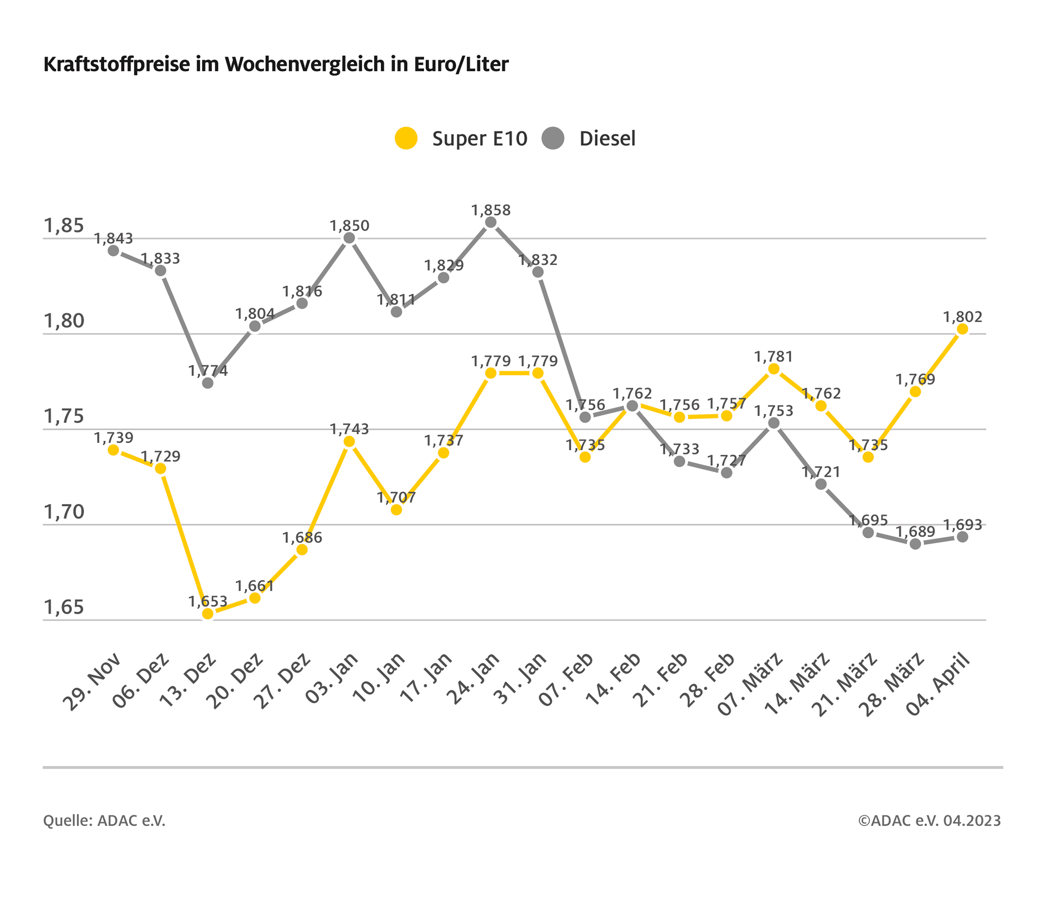 Der Preisanstieg bei Benzin ist laut ADAC auf die Verteuerung von Rohöl zurückzuführen. Gegenüber der Vorwoche ist Rohöl der Sorte Brent um rund sieben US-Dollar gestiegen – eine Folge der Ankündigung der OPEC+, ab Mai die Ölförderung drosseln zu wollen. Auch wenn die aktuelle Verteuerung an den Zapfsäulen dem Ölpreisanstieg geschuldet ist, bieten die Spritpreise weiterhin Spielraum für Preissenkungen.