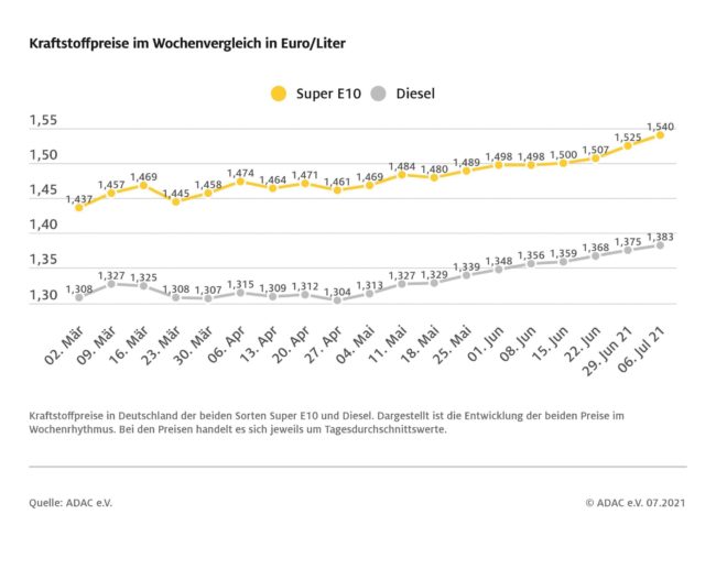 München (ots) Um mehr als sechs US-Dollar ist der Preis für ein Barrel Rohöl der Sorte Brent seit vergangener Woche abgesackt, doch an den Tankstellen ist dieser deutliche Rückgang bislang nicht angekommen. Wie die wöchentliche ADAC Auswertung der Kraftstoffpreise in Deutschland zeigt, kostet ein Liter Super E10 derzeit im bundesweiten Mittel 1,546 Euro und damit 0,1…