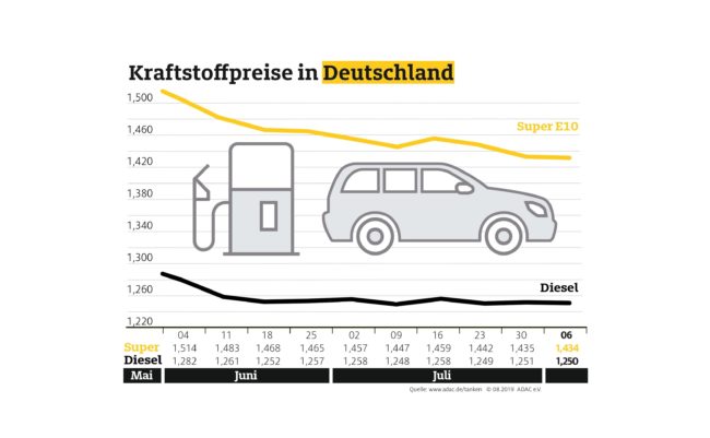 München (ots) Laut einer aktuellen Auswertung des ADAC ist Tanken im Vergleich zur Vorwoche wieder günstiger. Der Preis für einen Liter Super E10 im Bundesdurchschnitt liegt aktuell bei 1,409 Euro – ein Rückgang von 2,5 Cent im Vergleich zur vergangenen Woche. Dieselfahrer tanken bei einem Literpreis von 1,234 Euro immerhin 1,6 Cent billiger als in der…