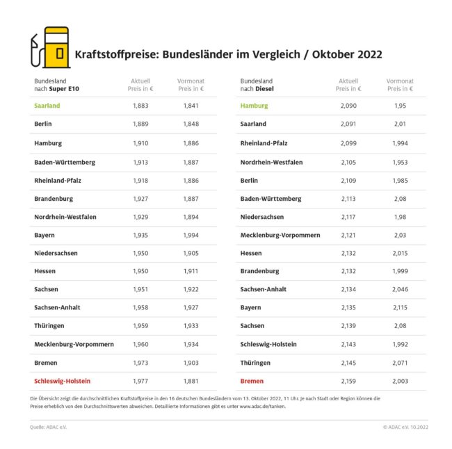 Kraftstoffpreise: Regionale Unterschiede geschmolzen – Bayern nicht mehr „Spitze“ – Diesel in Bremen am teuersten, Benzin in Schleswig-Holstein