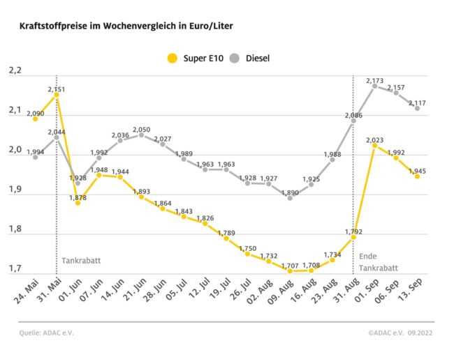 München (ots) – Leichte Entspannung an den Zapfsäulen, jedoch noch längst keine Entwarnung – das zeigt die aktuelle ADAC Auswertung der Kraftstoffpreise an den deutschen Tankstellen. Danach ist der Preis für einen Liter Super E10 seit vergangener Woche um immerhin 4,7 Cent gesunken und kostet derzeit im bundesweiten Mittel 1,945 Euro. Der Preis für Diesel…