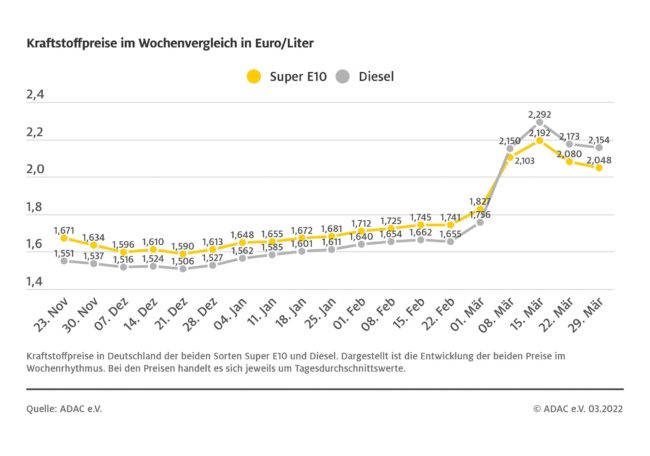Benzinpreis unter zwei Euro – Tanken bleibt zu teuer – Diesel im Vergleich zur Vorwoche gut zehn Cent billiger – ADAC sieht Potenzial für weitere Preissenkungen