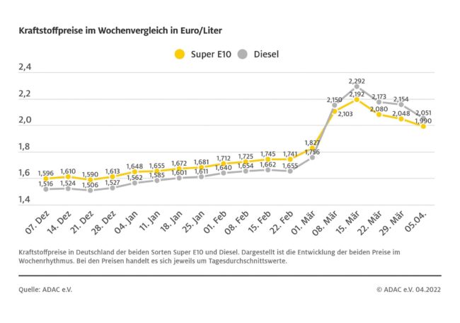 München (ots) – Auch wenn sich die Situation an den Zapfsäulen weiter entspannt hat – Tanken ist nach wie vor im Vergleich zum Rohölpreis viel zu teuer. Wie die aktuelle ADAC Auswertung der Kraftstoffpreise zeigt, kostet ein Liter Super E10 derzeit im bundesweiten Mittel 1,990 Euro. Gegenüber der Vorwoche ist dies ein Rückgang um 5,8…