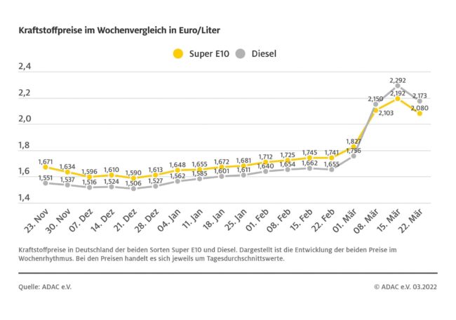 ADAC Spritpreise gegenüber Vorwoche deutlich gesunken – ADAC: Preisniveau immer noch zu hoch