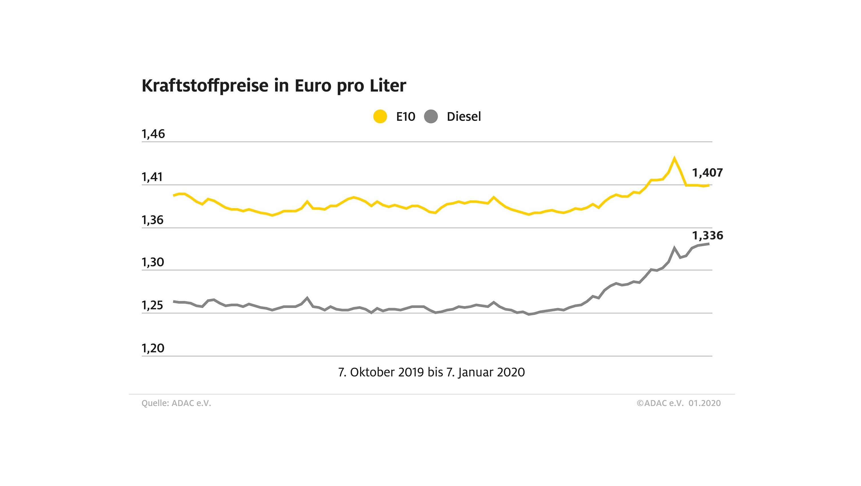 Autofahrer müssen für Diesel deutlich tiefer in die Tasche greifen als zum Jahreswechsel. Benzin hingegen wurde billiger. Laut aktueller Auswertung des ADAC kostet ein Liter Super E10 im Bundesmittel derzeit 1,407 Euro, das sind 1,5 Cent weniger als in der Vorwoche. Diesel verteuerte sich um 2,2 Cent auf durchschnittlich 1,336 Euro je Liter.